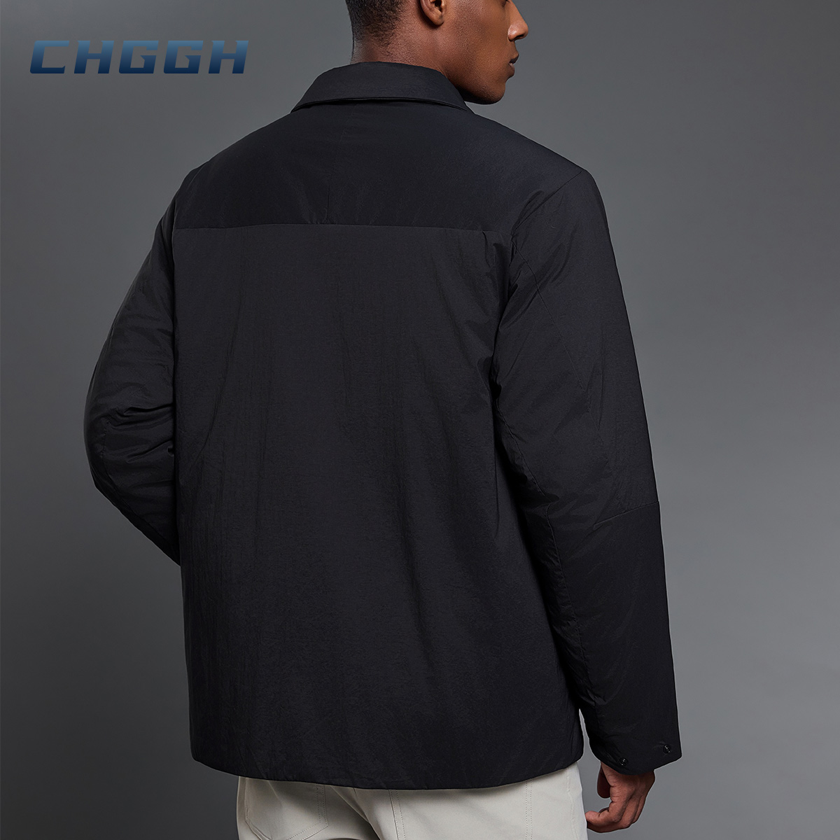 Front Closure: Smooth central zipper paired with a classic pointed collar — balances sleekness with a timeless overshirt silhouette, easy to layer over tees or under outerwear.