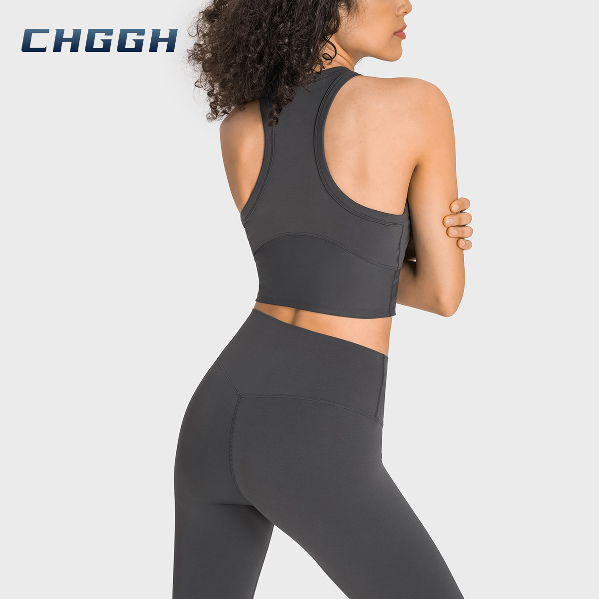 High-elasticity Bare-feel Yoga Set With Padded Shockproof Vest
