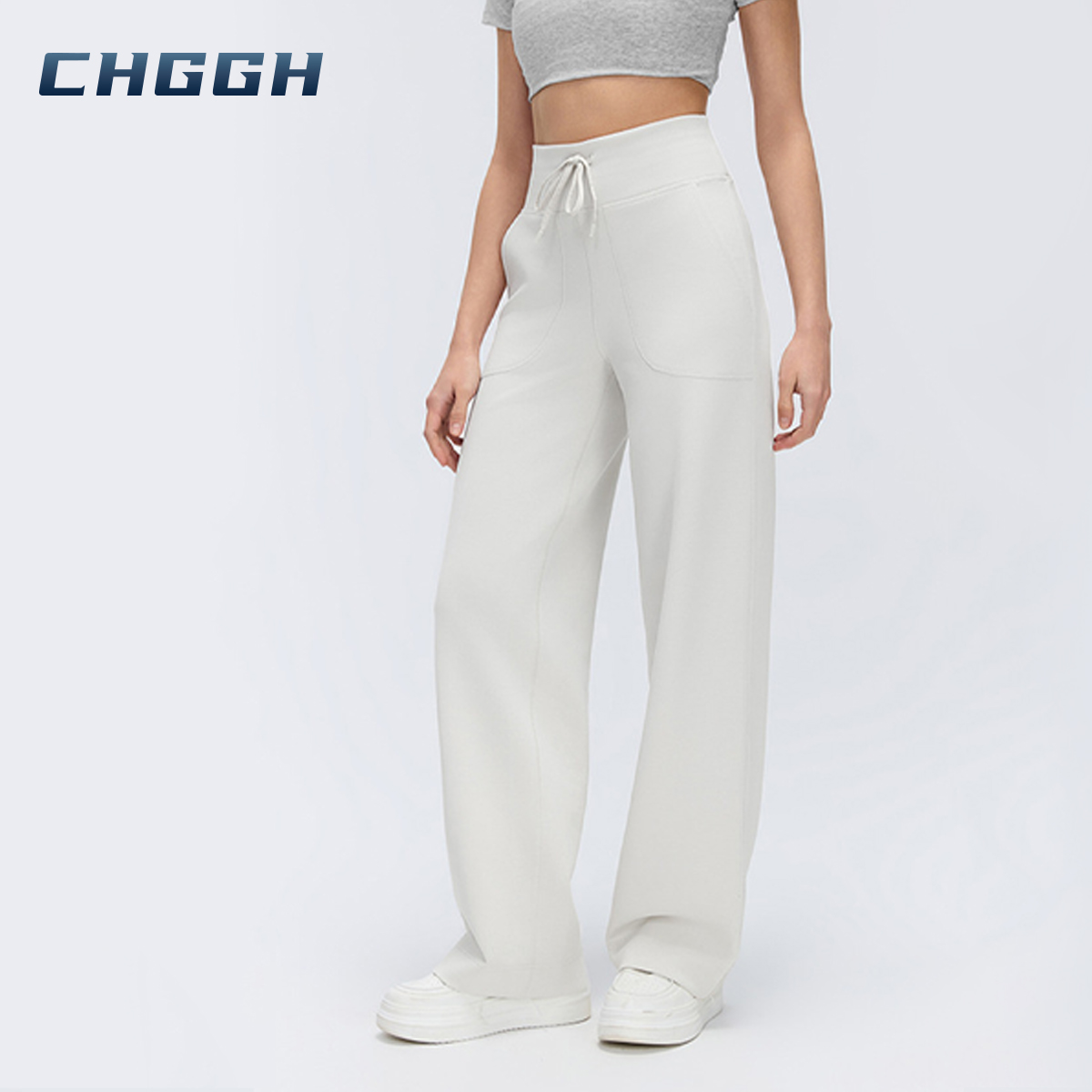 High-Waisted Drape Straight-Leg Pants – Drawstring Active Lounge Trousers