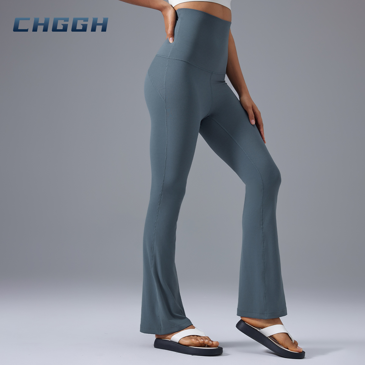 This flared sport pant has a high-waist design and naked-like touch. It lifts the buttocks and slims the figure, fitting well for yoga, gym training and daily sports.