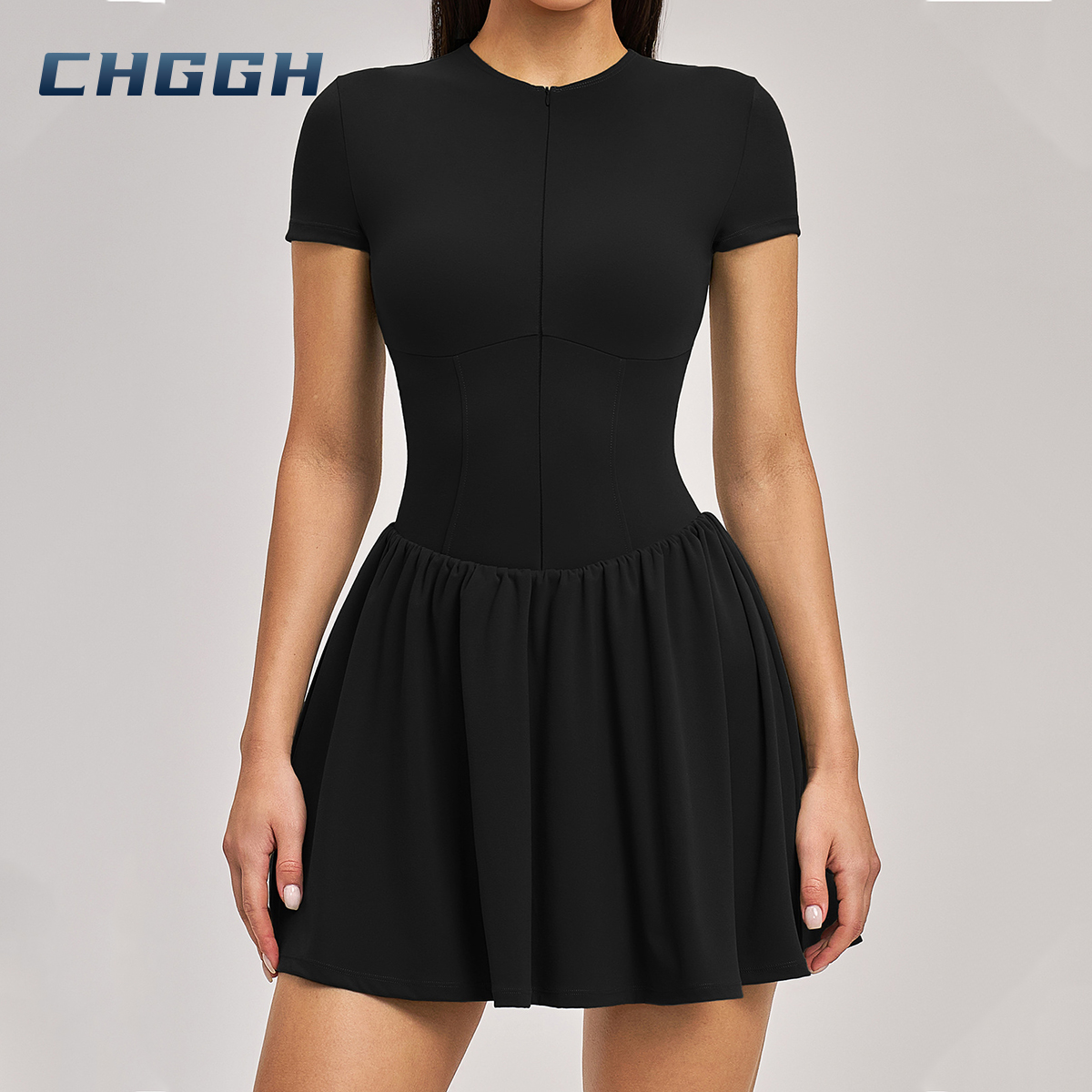 Mock-Neck Zip-Front Bodysuit – Sculpting Short-Sleeve Active Romper