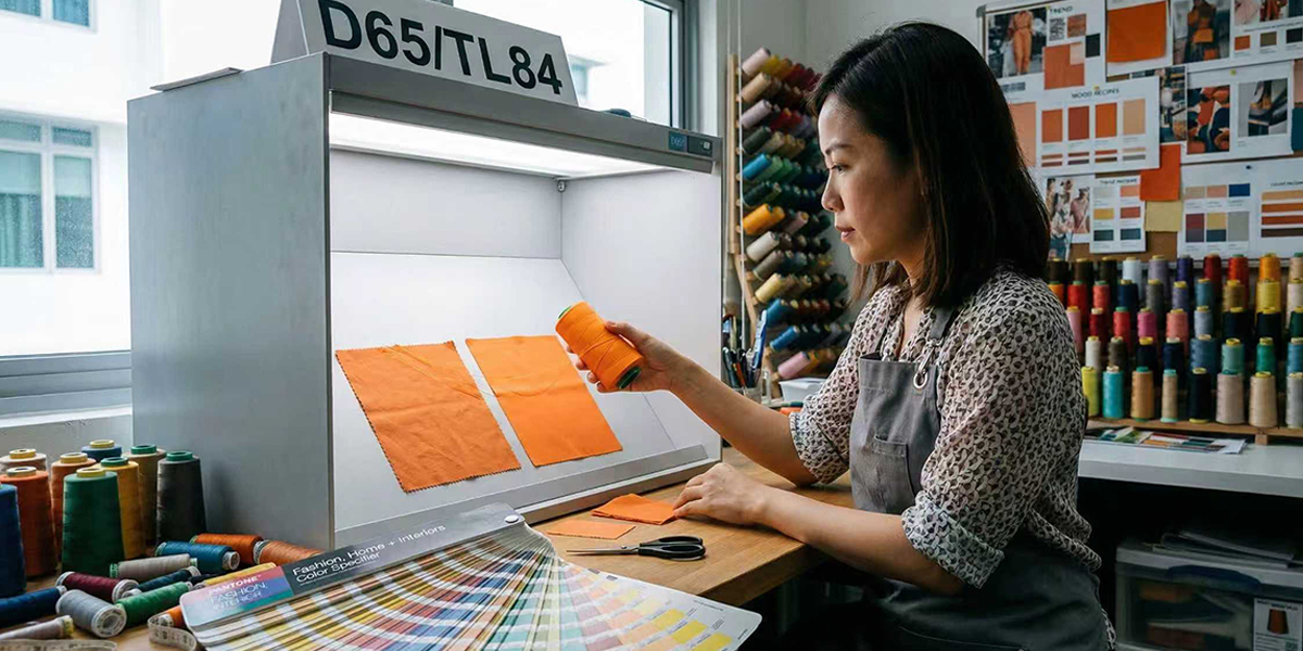 Tone-on-tone stitching refers to matching seam colour as closely as possible to the base fabric, typically controlled within ΔE < 1.0.