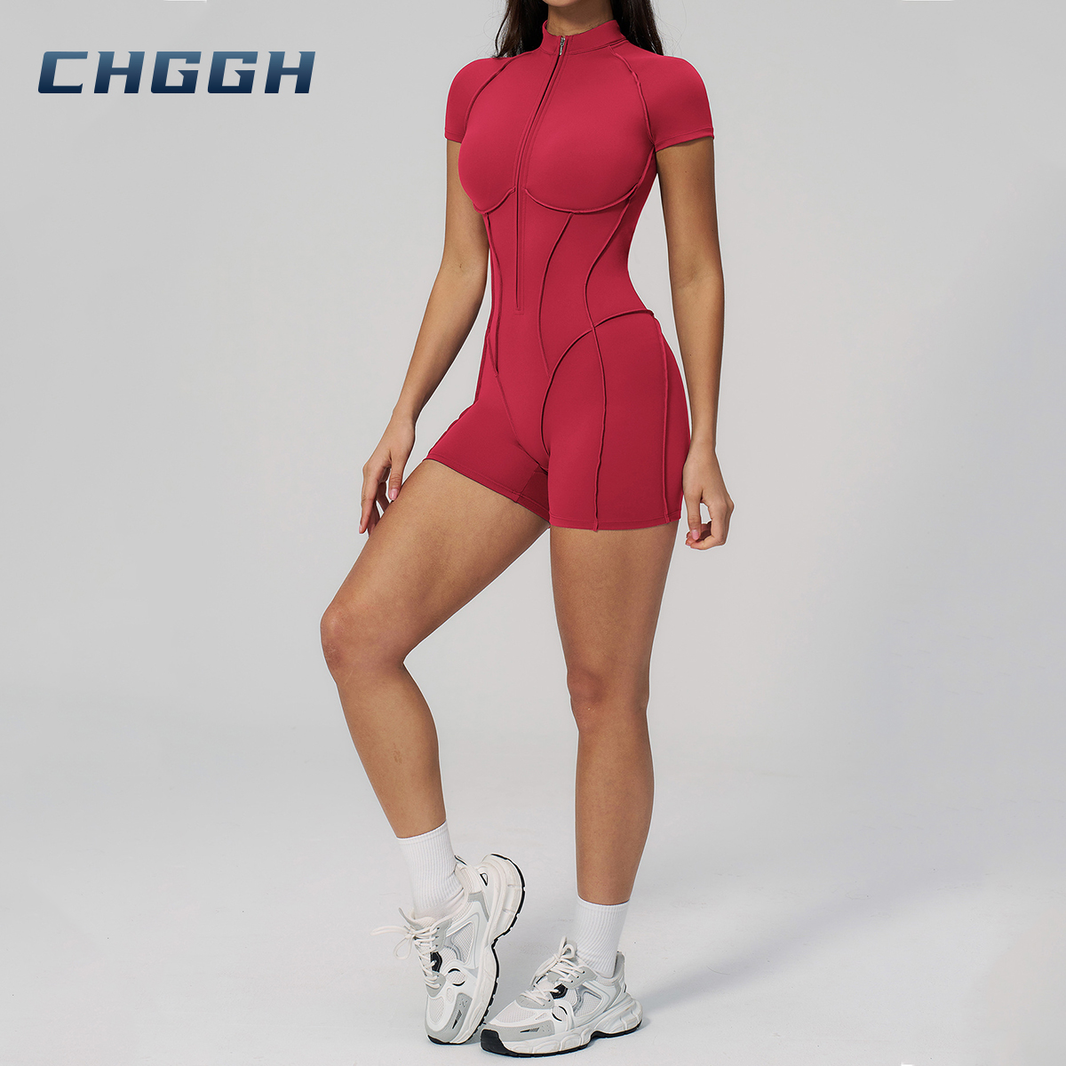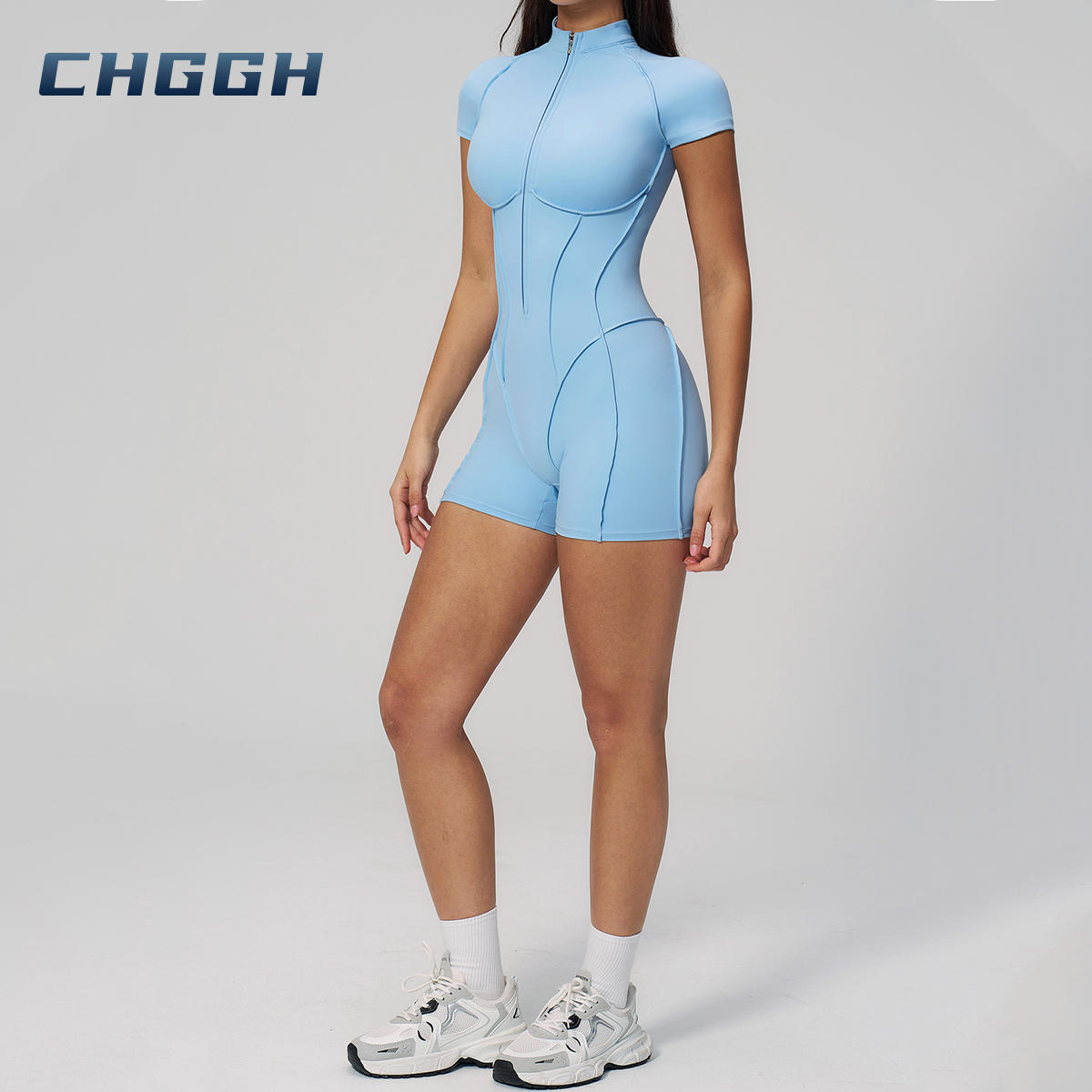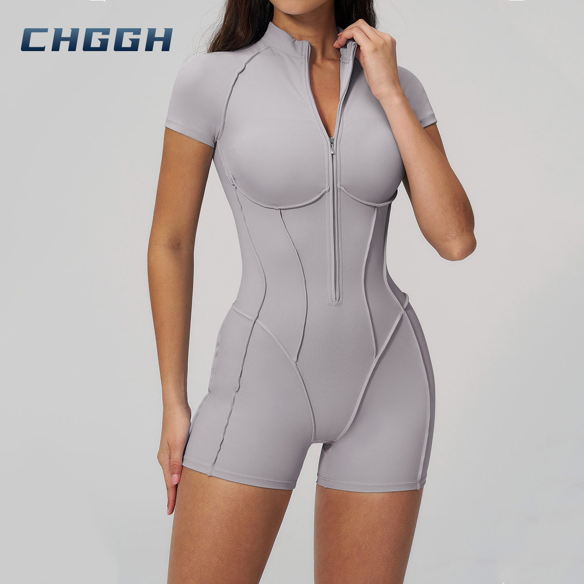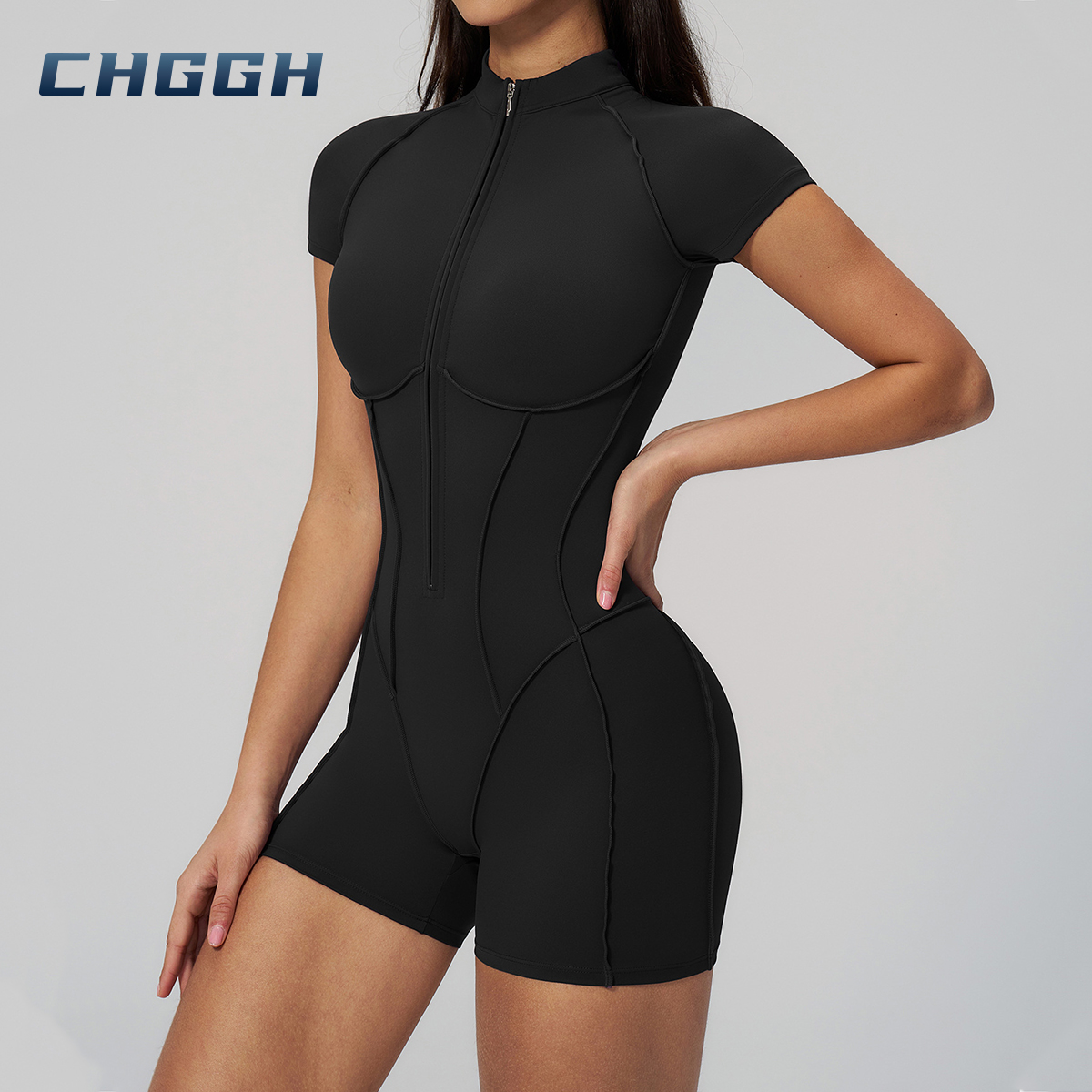 Premium Contour Zip-Front Activewear Romper | Short Sleeve Yoga & Fitness Bodysuit