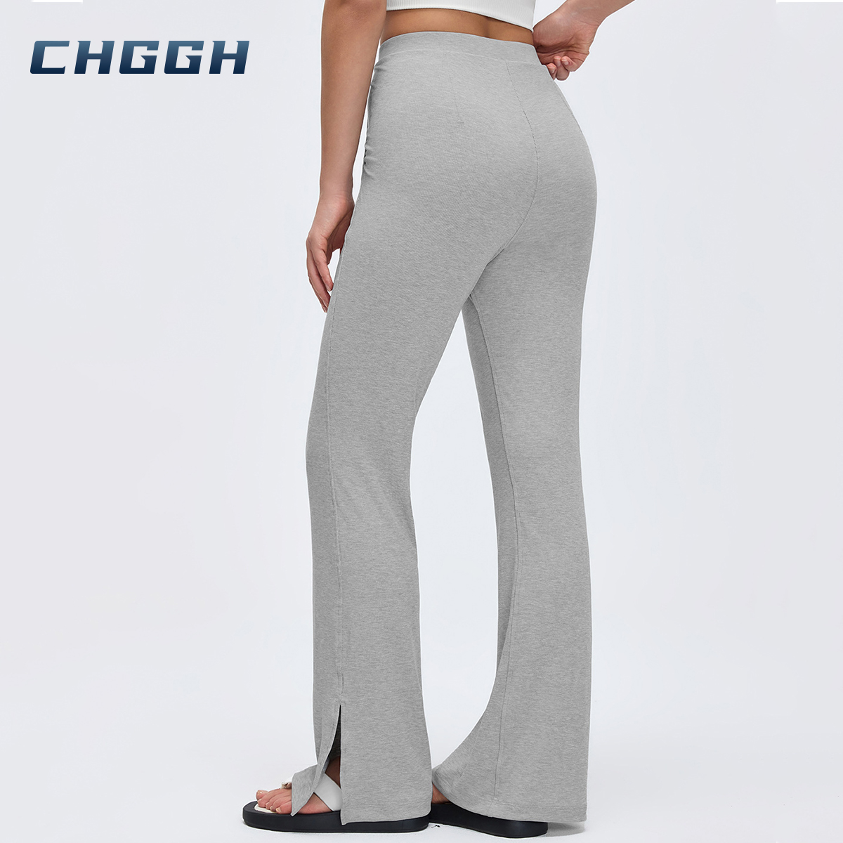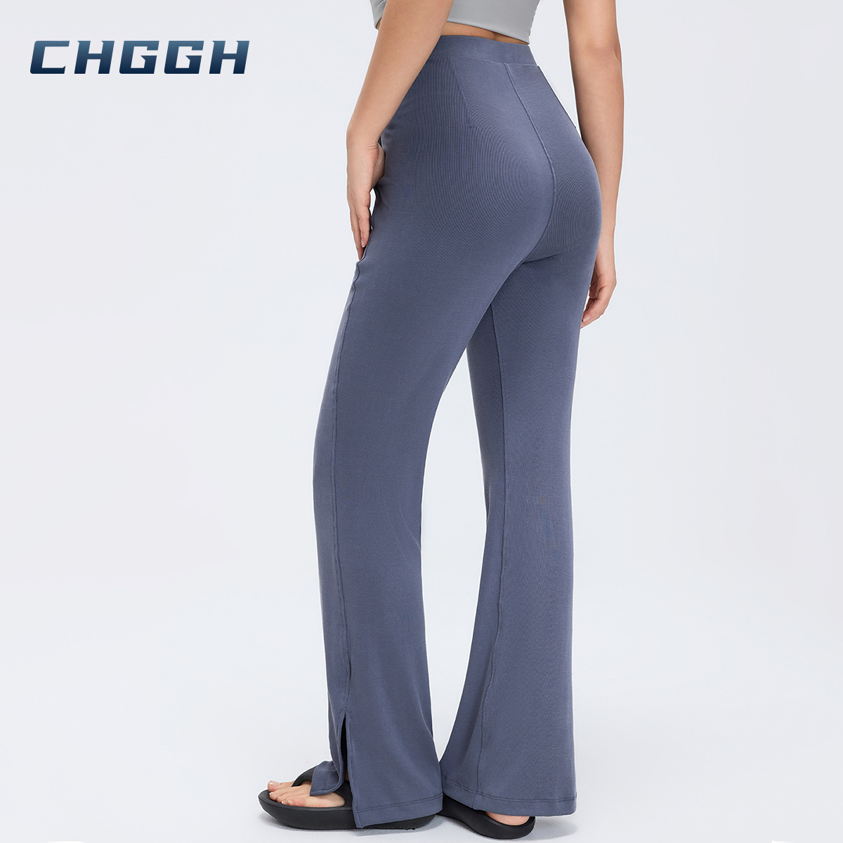 Ribbed Flared Yoga Pants | Wide-Leg Draped Workout Trousers