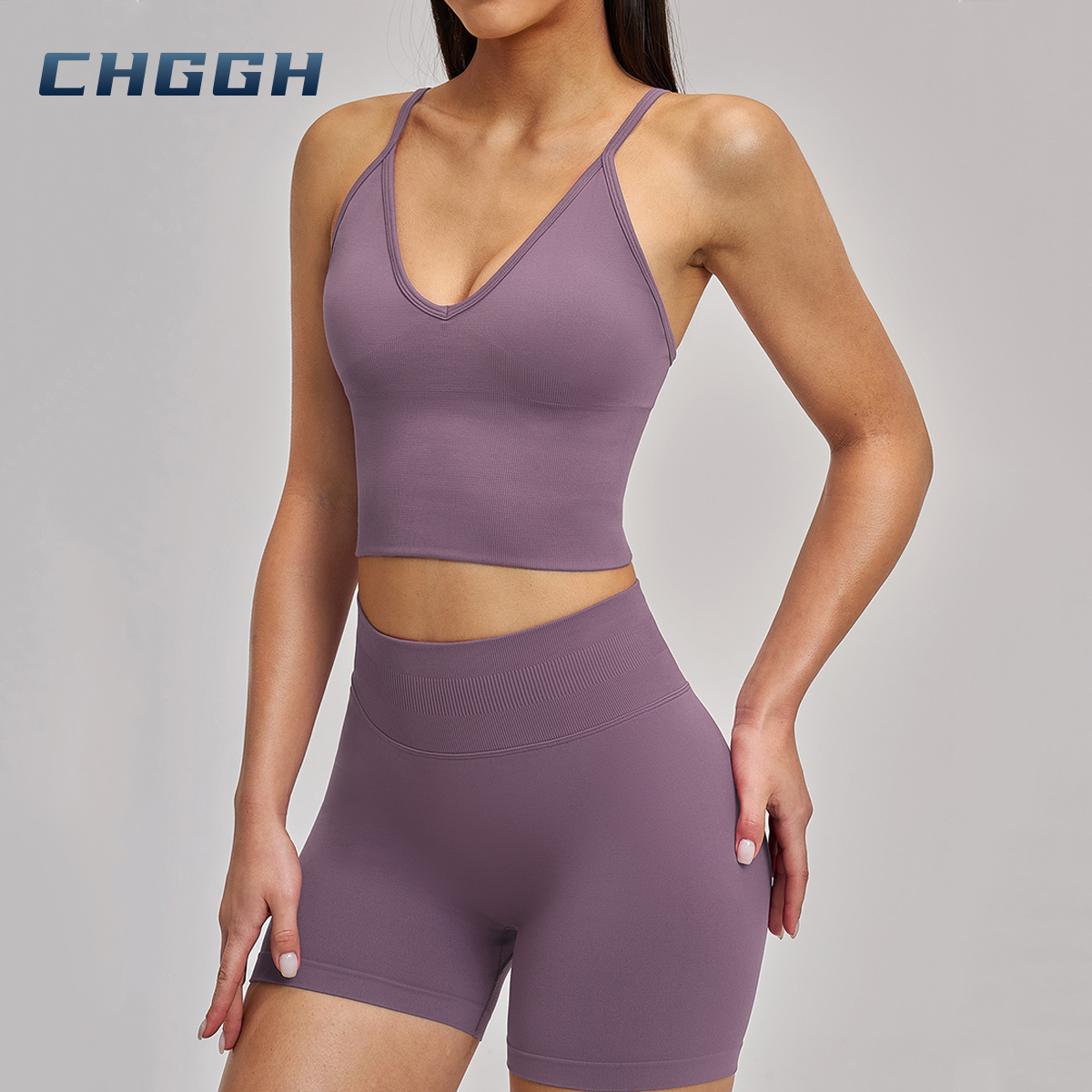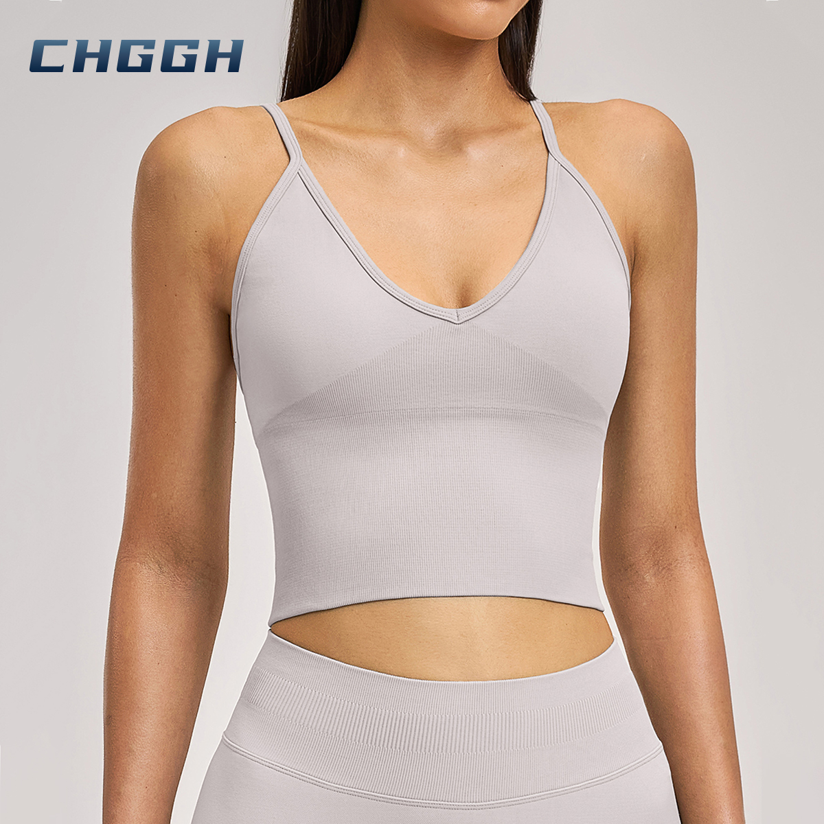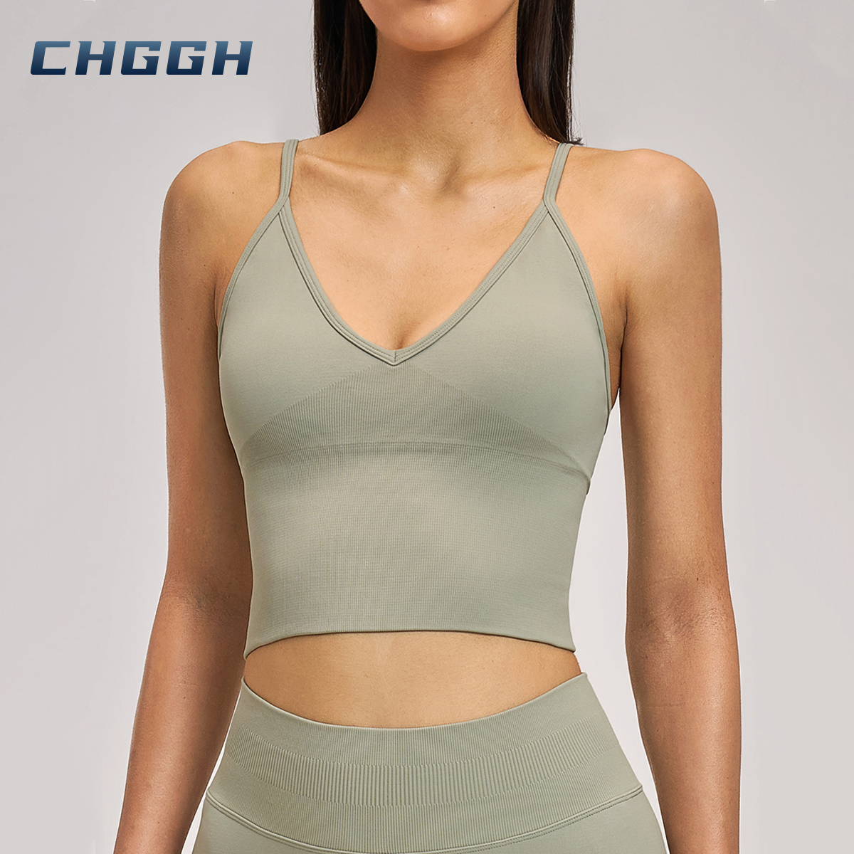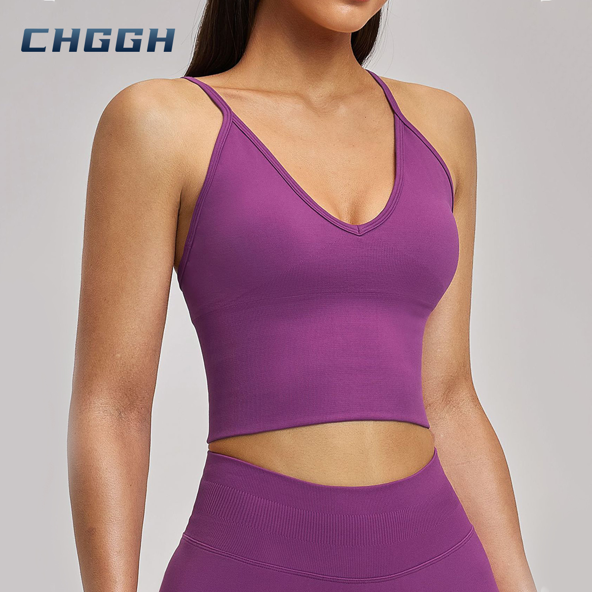 Seamless V-Neck Longline Sports Bra | High Support Strappy Back Workout Crop Top
