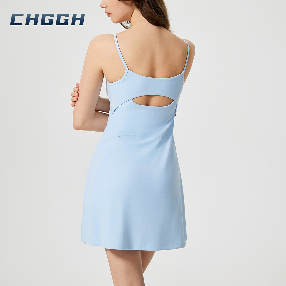 Designed for stylish active women: backless sling adds sex appeal, A-line shape flatters figure. Quick-dry fabric ensures breathability. Built-in liner for coverage, with custom fit and tummy control for confident workouts.