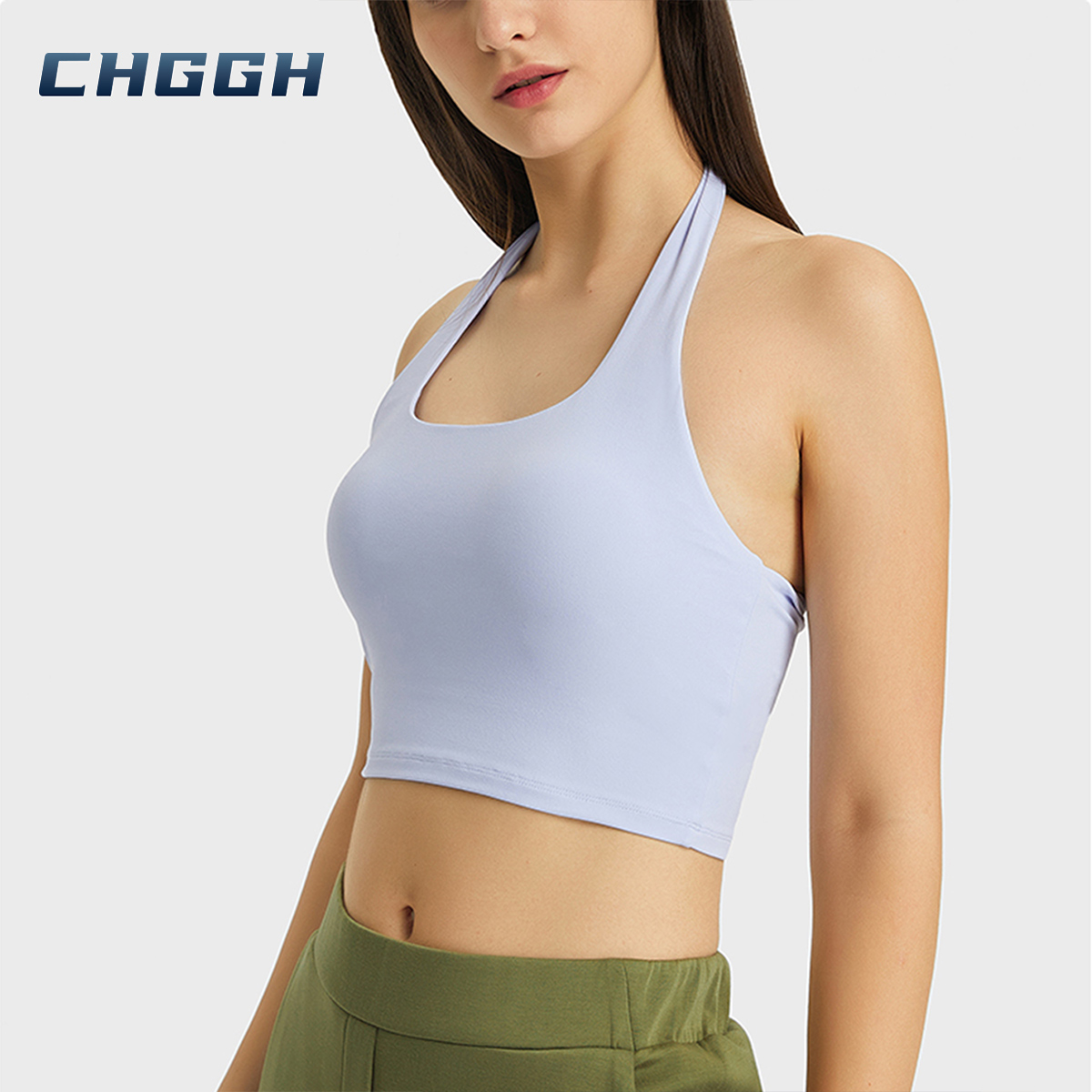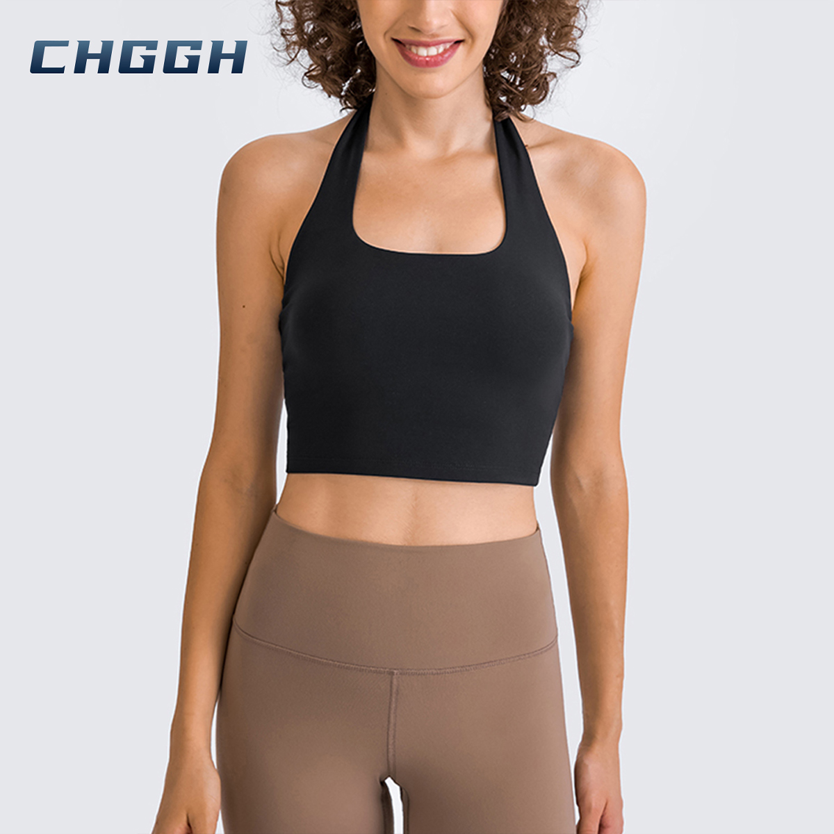 Skin-Friendly High-Elastic Sports Bra - Halter Neck Open Back Top For Fitness And Daily Wear