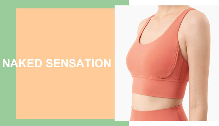 It feels like you are wearing nothing in this collection. With 80% Nylon and 20% Spandex, the sports bras and leggings which make in naked sensation fabric are soft and smooth. They support your body but give super-free feeling at the same time. Against the friction, enjoy the "cloud light" and butter soft, you can not miss our classic fabric.
