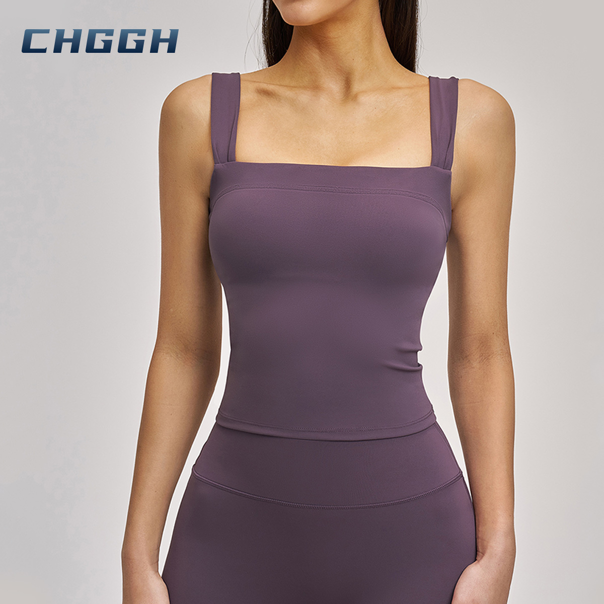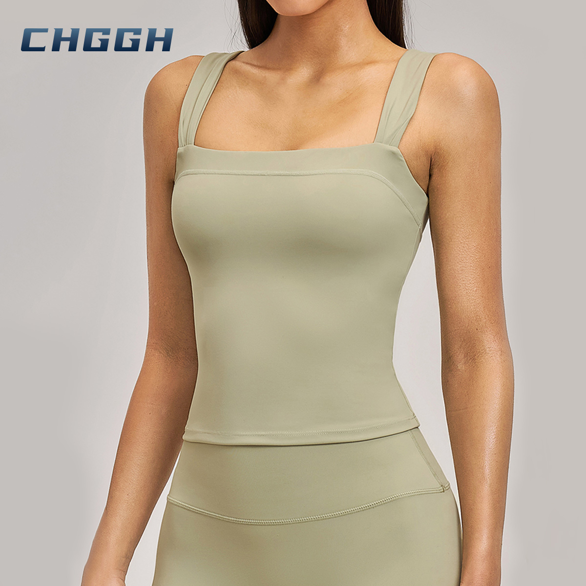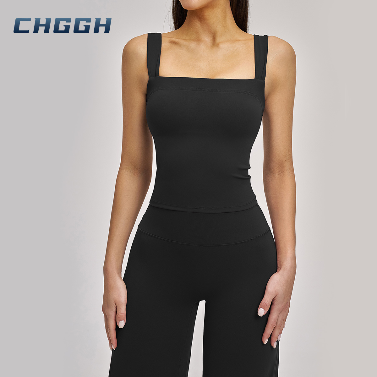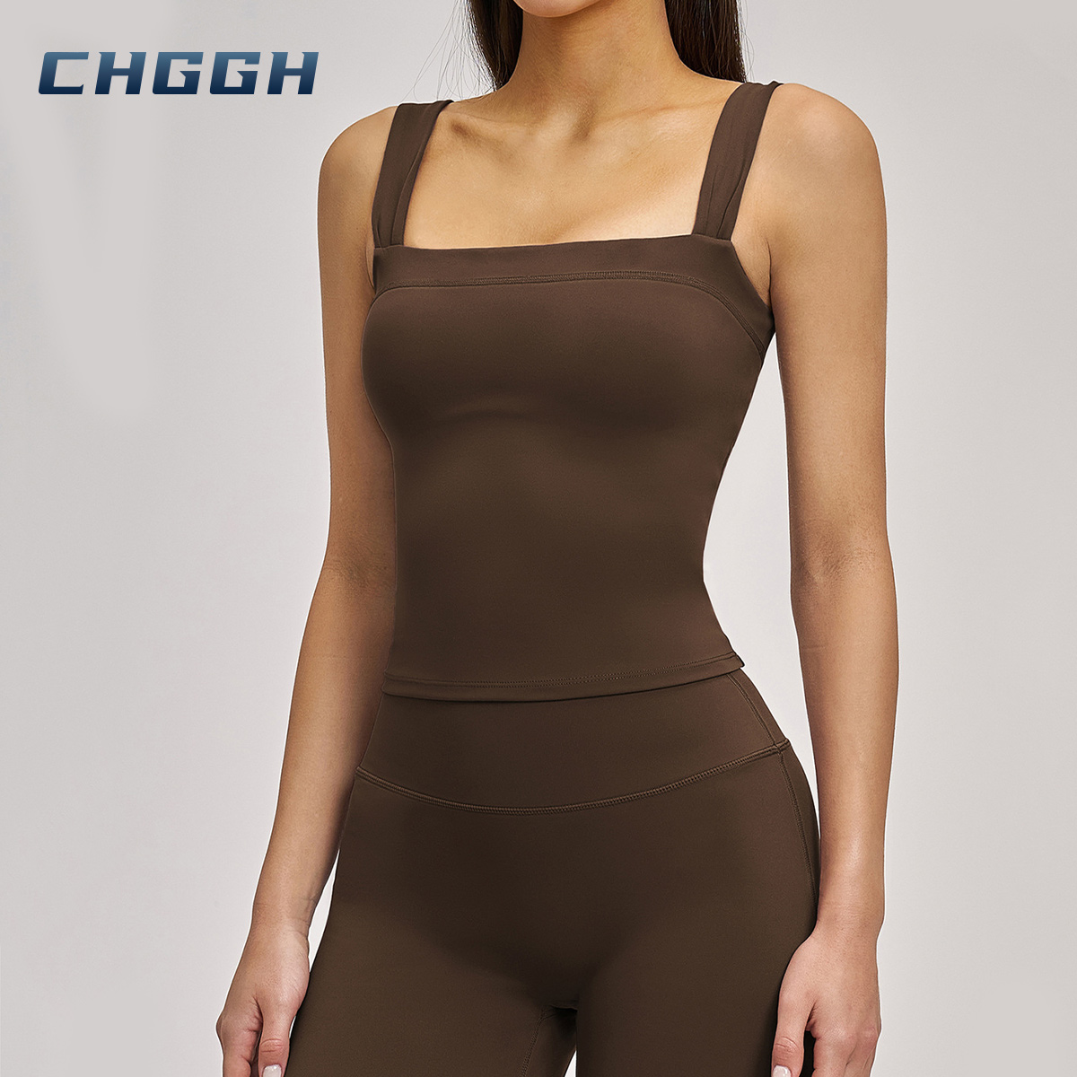 Square Neck Performance Tank – High-Stretch Padded Active Crop Top