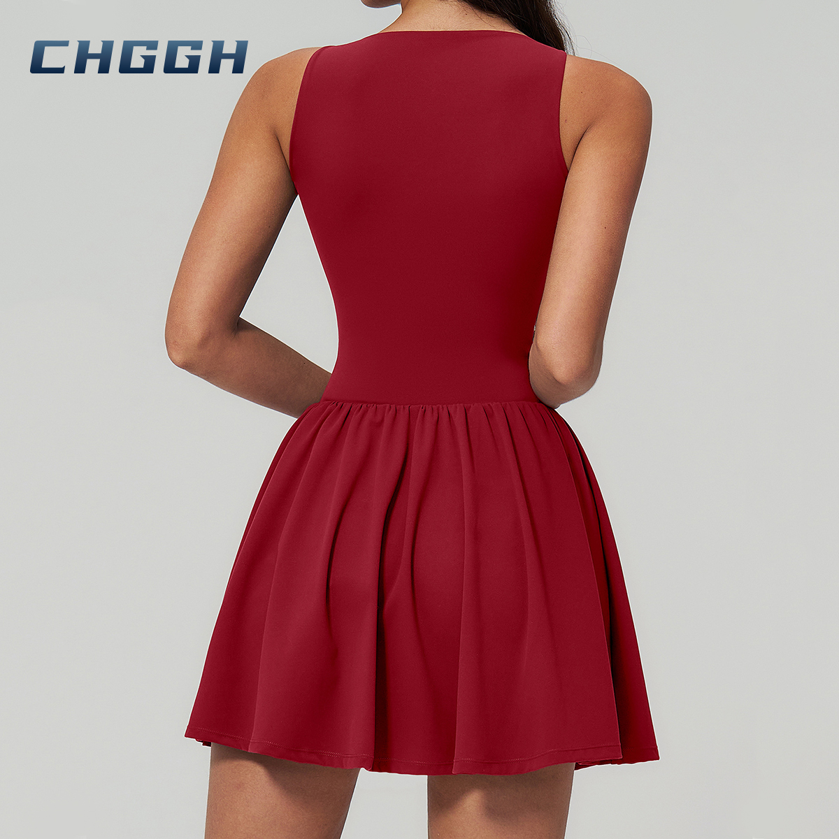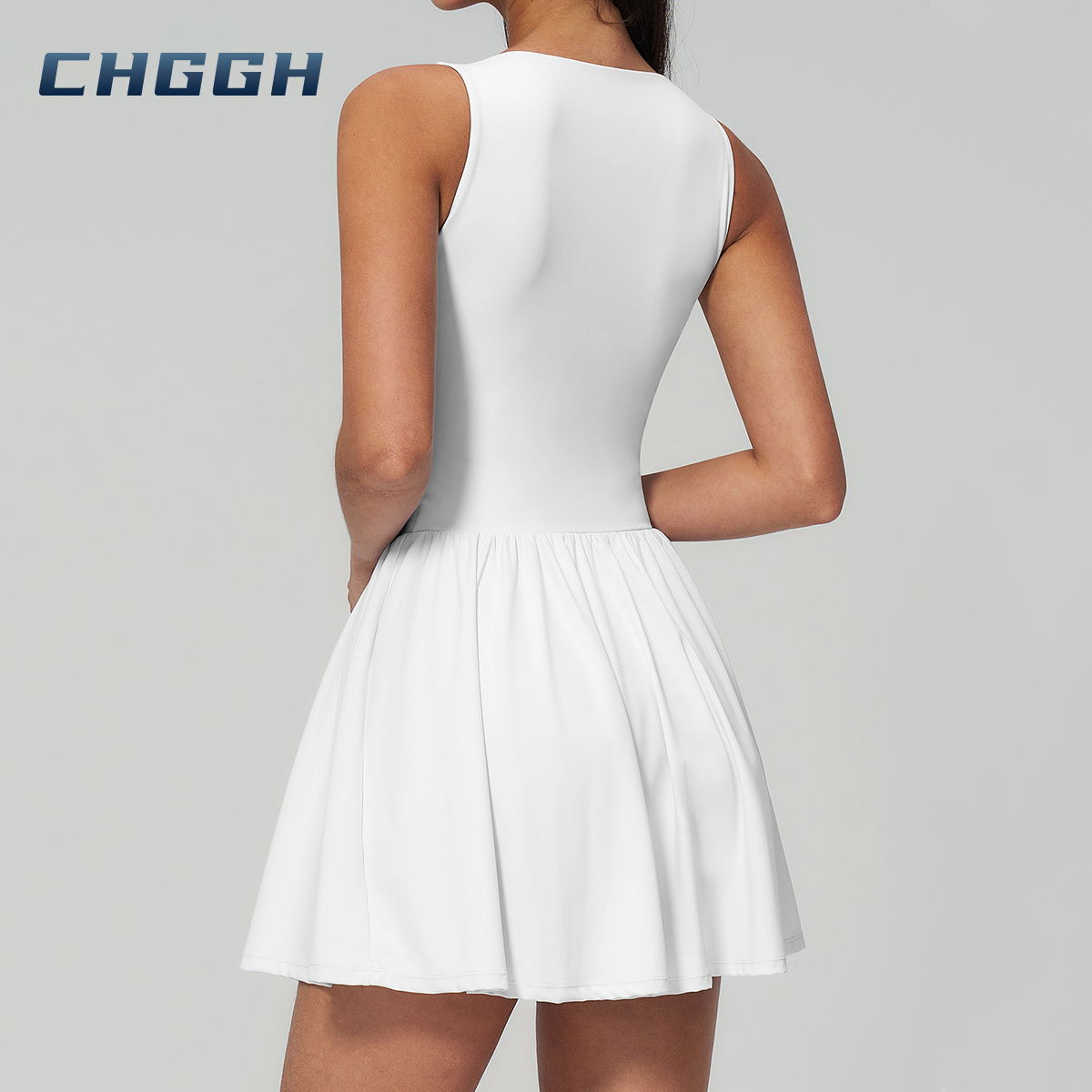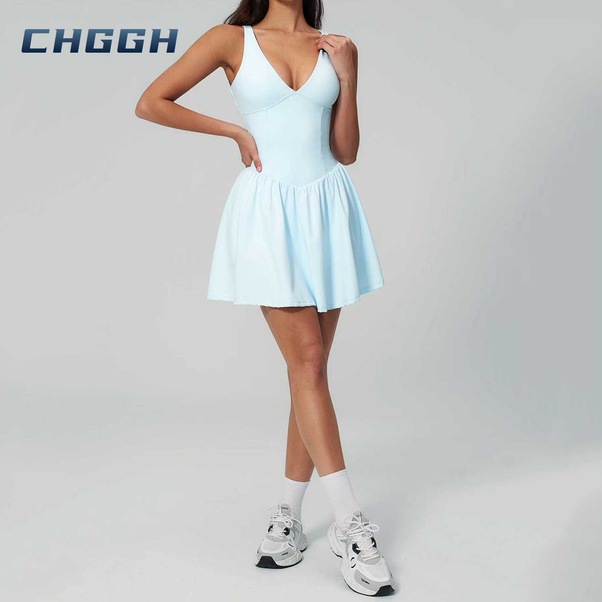 At CHGGH, we believe your activewear should seamlessly blend performance with personal style. Our premium V-neck active dress features a sculpting bodice and a fluid flared skirt, expertly engineered to support every movement—from the tennis court to the city streets.