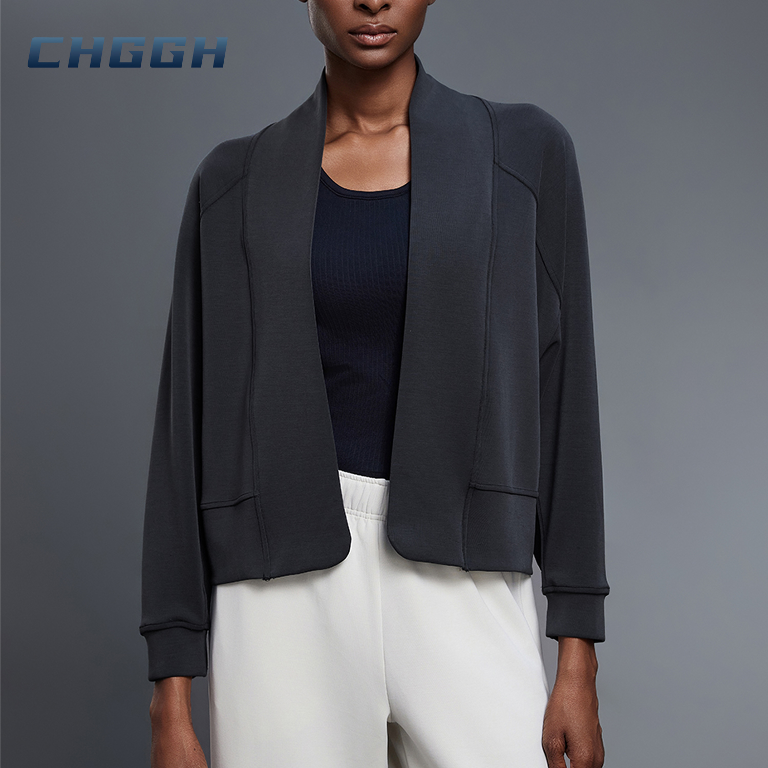 The open-front shawl design offers freedom of movement and a touch of elegance, while the long sleeves keep you cozy and stylish through any season.