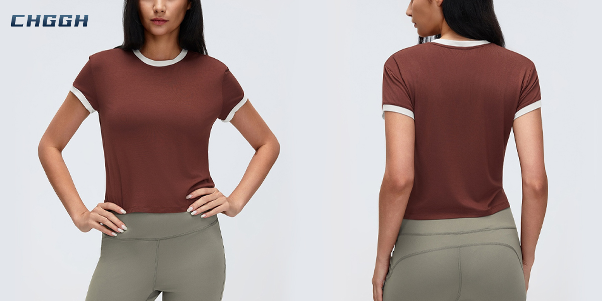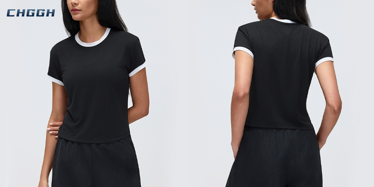 Made from soft, breathable, and lightweight fabric, this short sleeve top delivers all-day comfort and freedom of movement. The minimalist colorblock design adds visual contrast without overpowering the overall style, making it easy to pair with high-waist leggings or shorts.