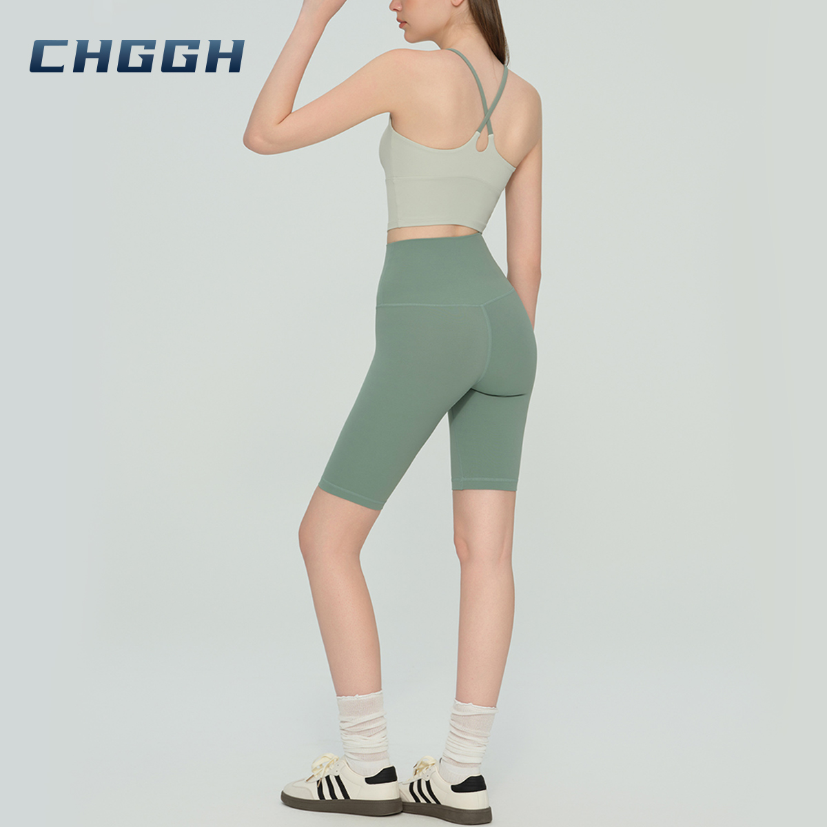 Women's Cross-Back Crop Top & High-Waist Yoga Shorts Set