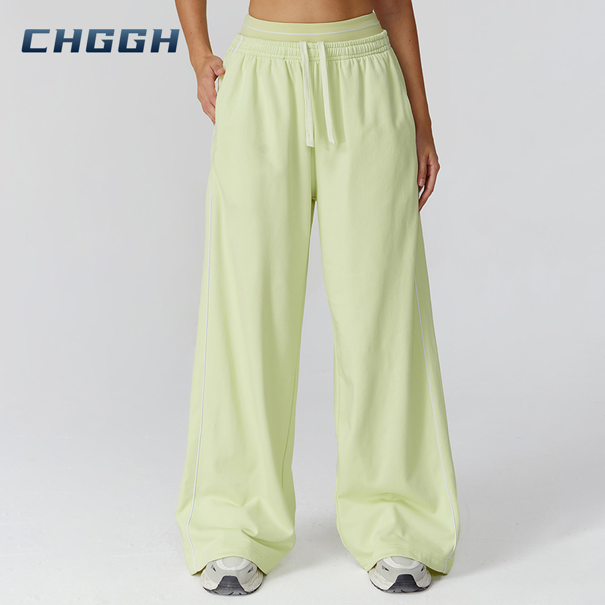 These women's high-waist wide-leg track pants are made of soft breathable fabric, featuring a high-waist loose design with side stripes for a stylish look. The skin-friendly fabric offers no restriction, suitable for daily outings, home lounge and other scenarios, showing comfort and fashion sense in wear.