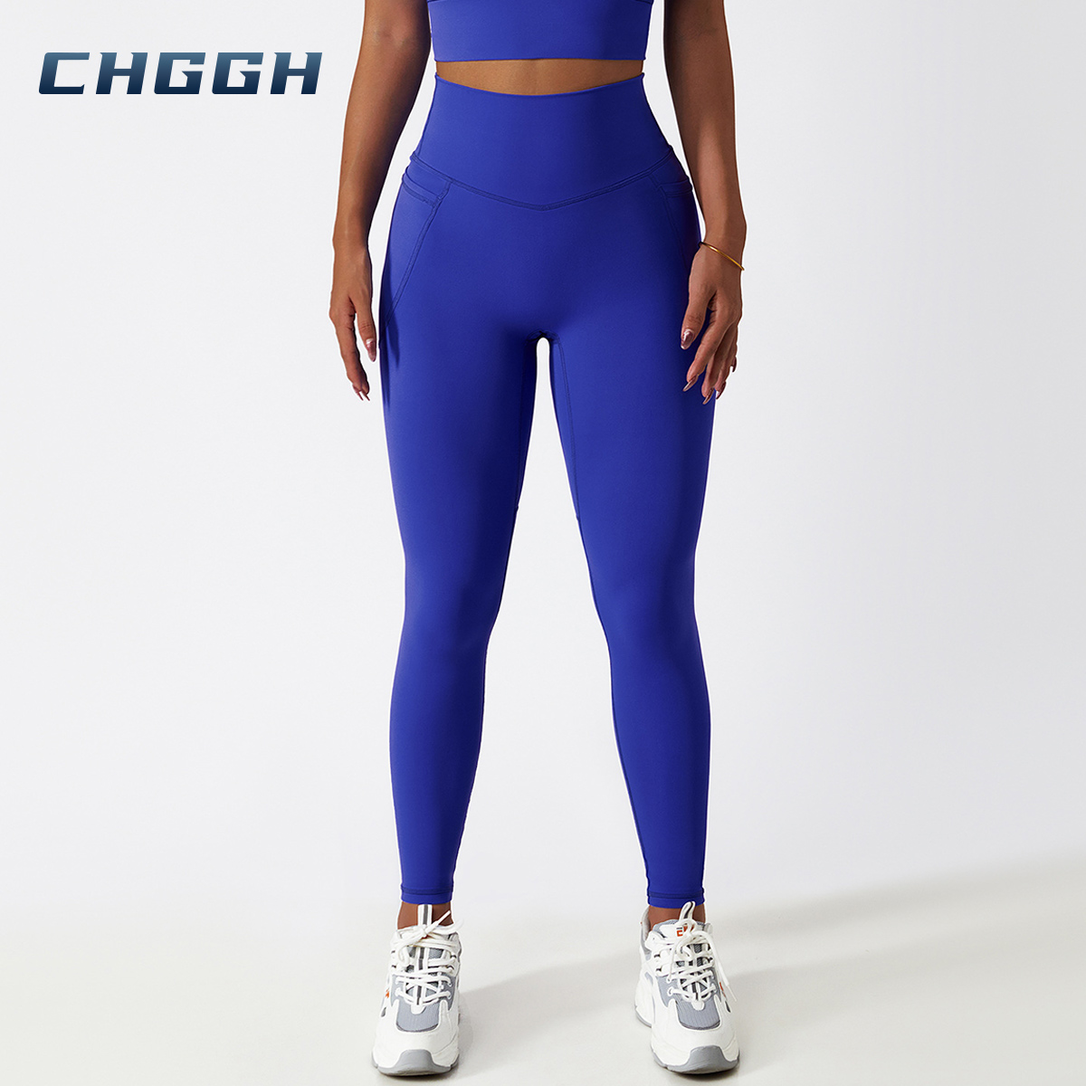 This women's yoga pants has high waist for butt-lifting and pockets for convenience. Tight fit shapes figure, quick-dry fabric keeps dry, suitable for running, fitness and casual wear.