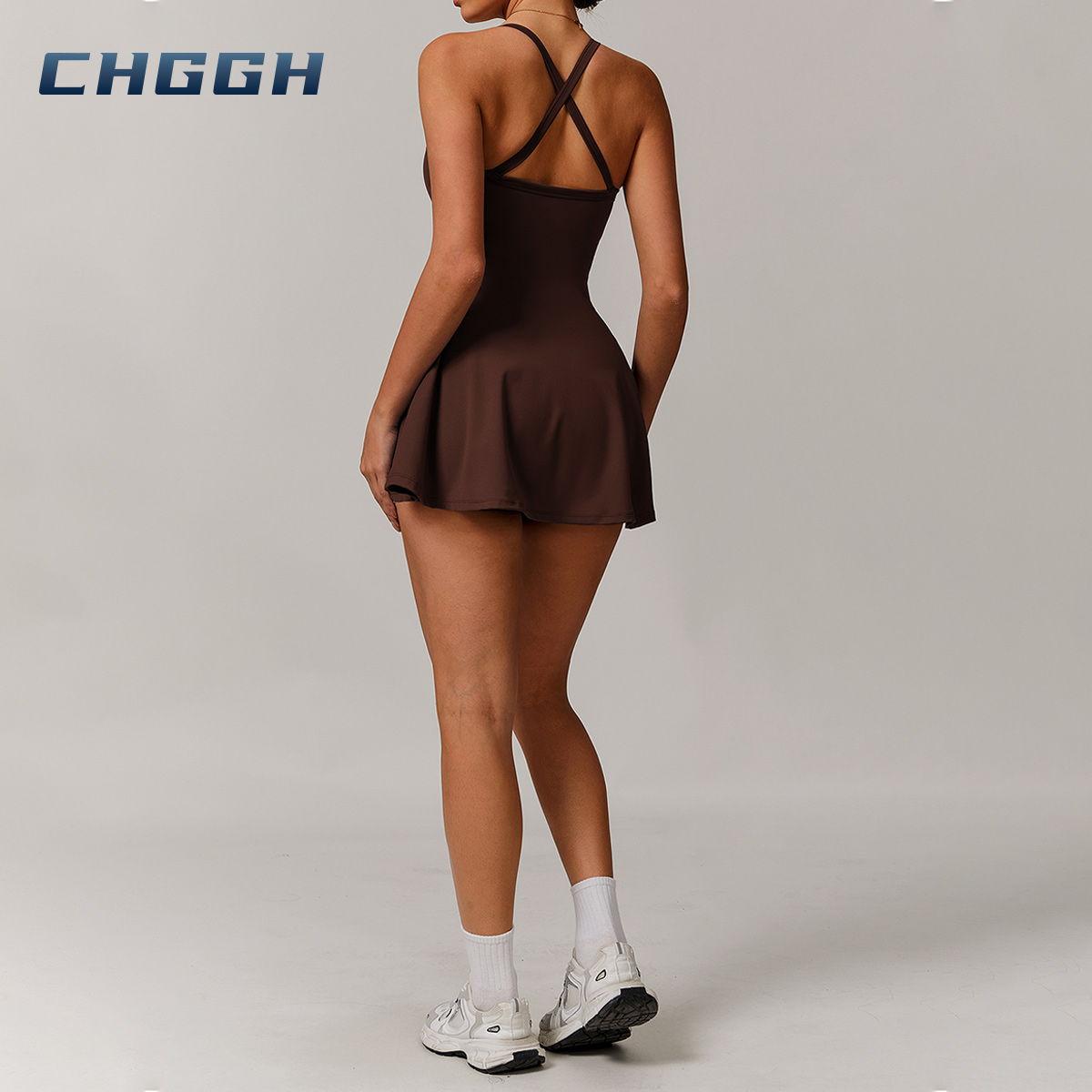 This women's tennis dress is made of recyclable fabric. It has a crisscross cutout back and knot detail, with anti slip design to avoid exposure. Breathable and stylish, it fits tennis, sports and daily occasions, blending sustainability and practicality.
