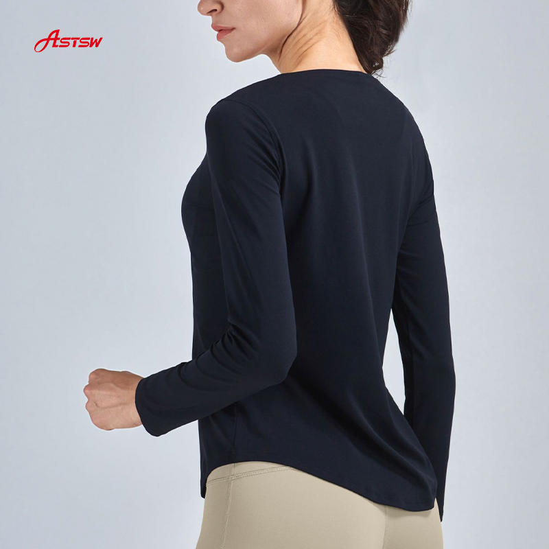 Our Women's Round Neck Breathable Gym Top , the color is simple, but it looks comfortable. Quick drying fabrics take away your sweat and heat and bring you dryness. Suitable for autumn wear with yoga bra. Irregular dress hem is its feature, which is recommended to you who are full of creativity.