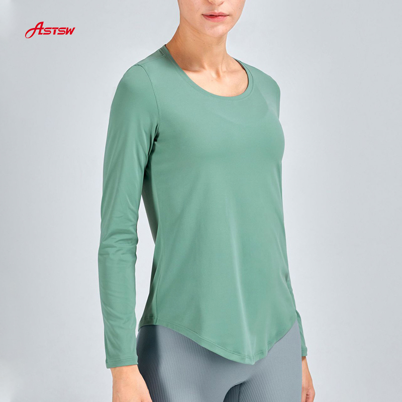 Our Women's Round Neck Breathable Running Top , the color is simple, but it looks comfortable. Quick drying fabrics take away your sweat and heat and bring you dryness. Suitable for autumn wear with yoga bra. Irregular dress hem is its feature, which is recommended to you who are full of creativity.