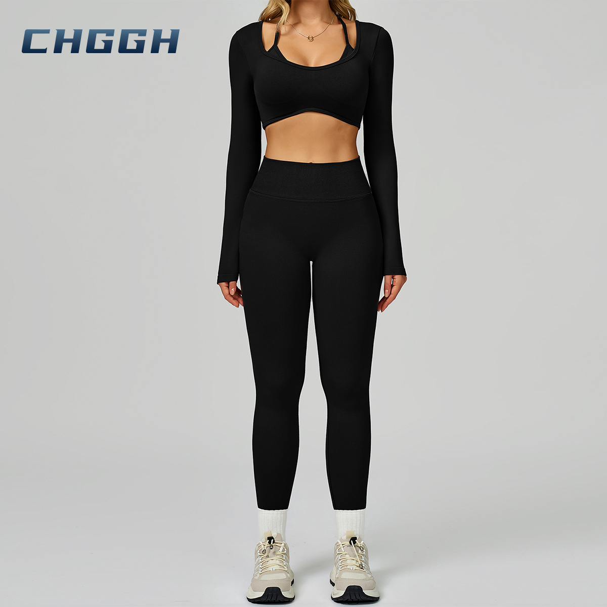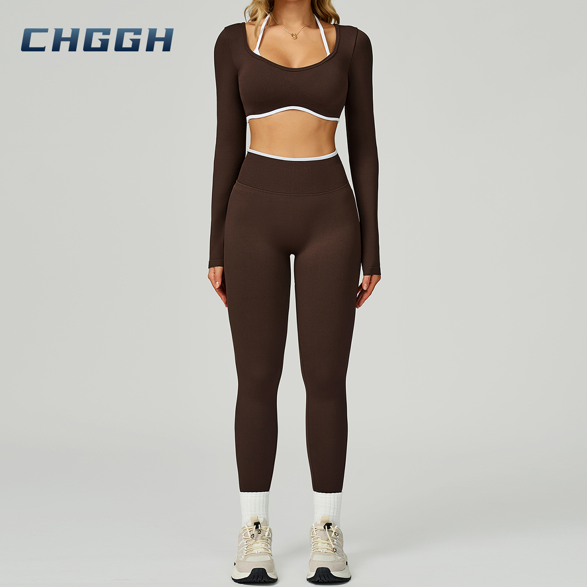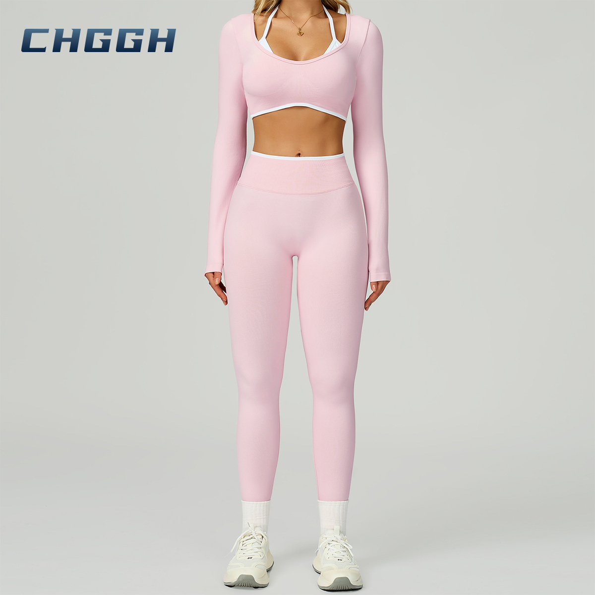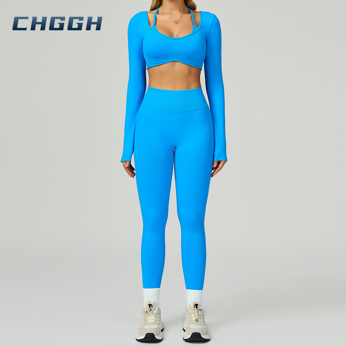 The hollow-back sports bra enhances breathability and highlights a beautiful back curve. High-waist leggings provide tummy control and a flattering peach-hip silhouette.