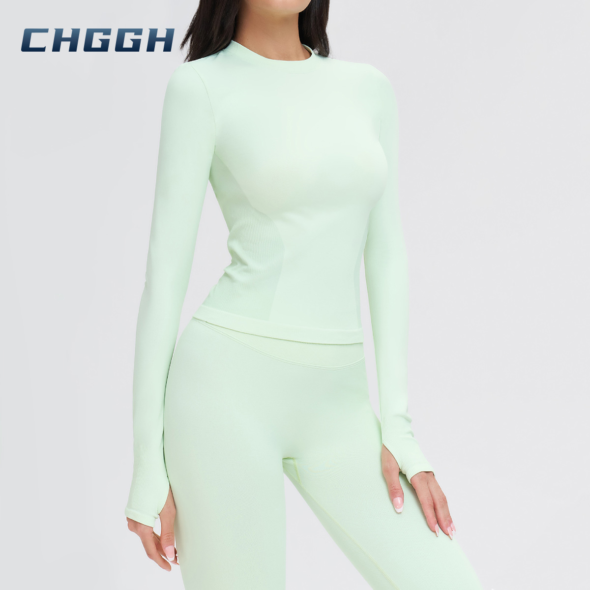 This women’s seamless long sleeve yoga top features a classic crew neck and a tight-fit design for a smooth, comfortable feel. Made from breathable, stretchy fabric, it supports yoga, running, fitness training, and outdoor workouts with all-day comfort.