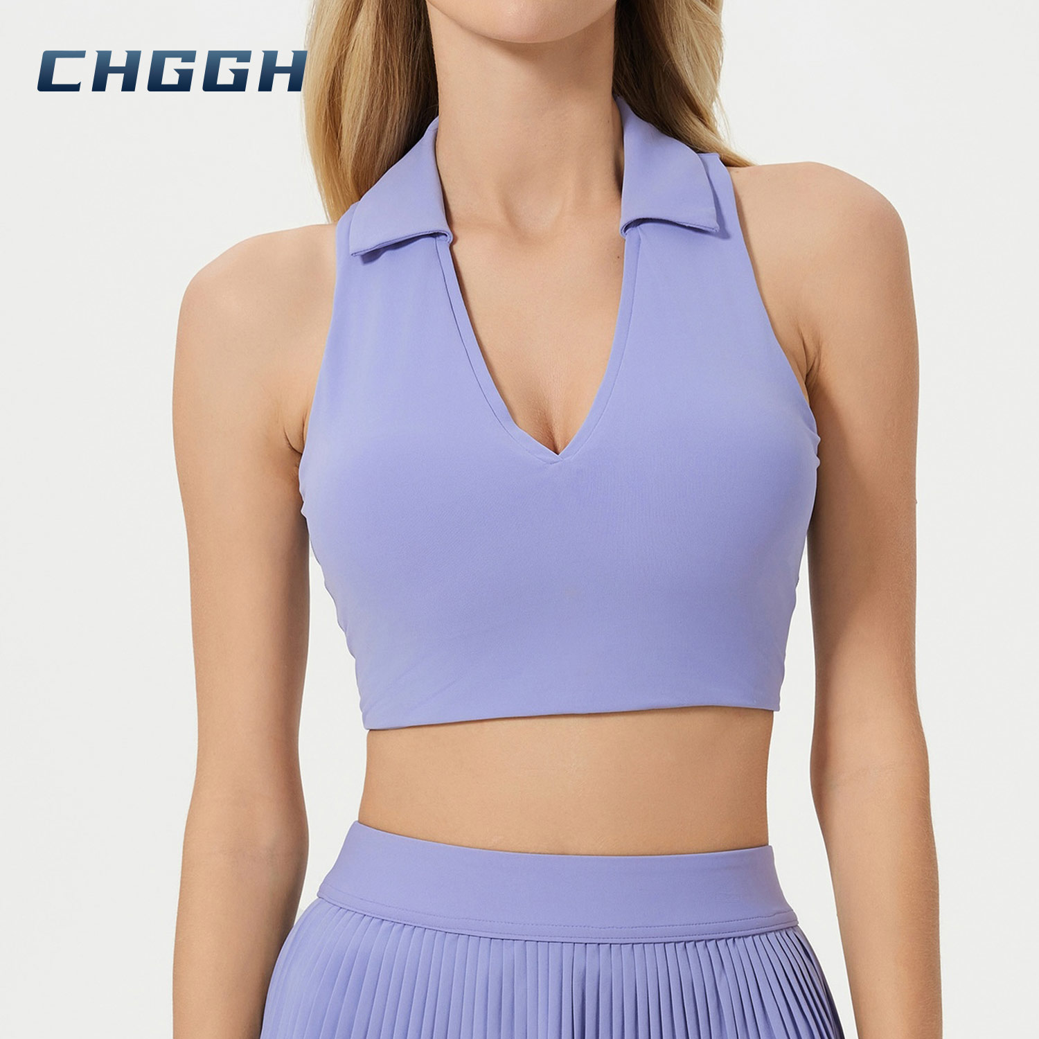 Women’s Tennis Polo Collar Hollow Back Sports Bra