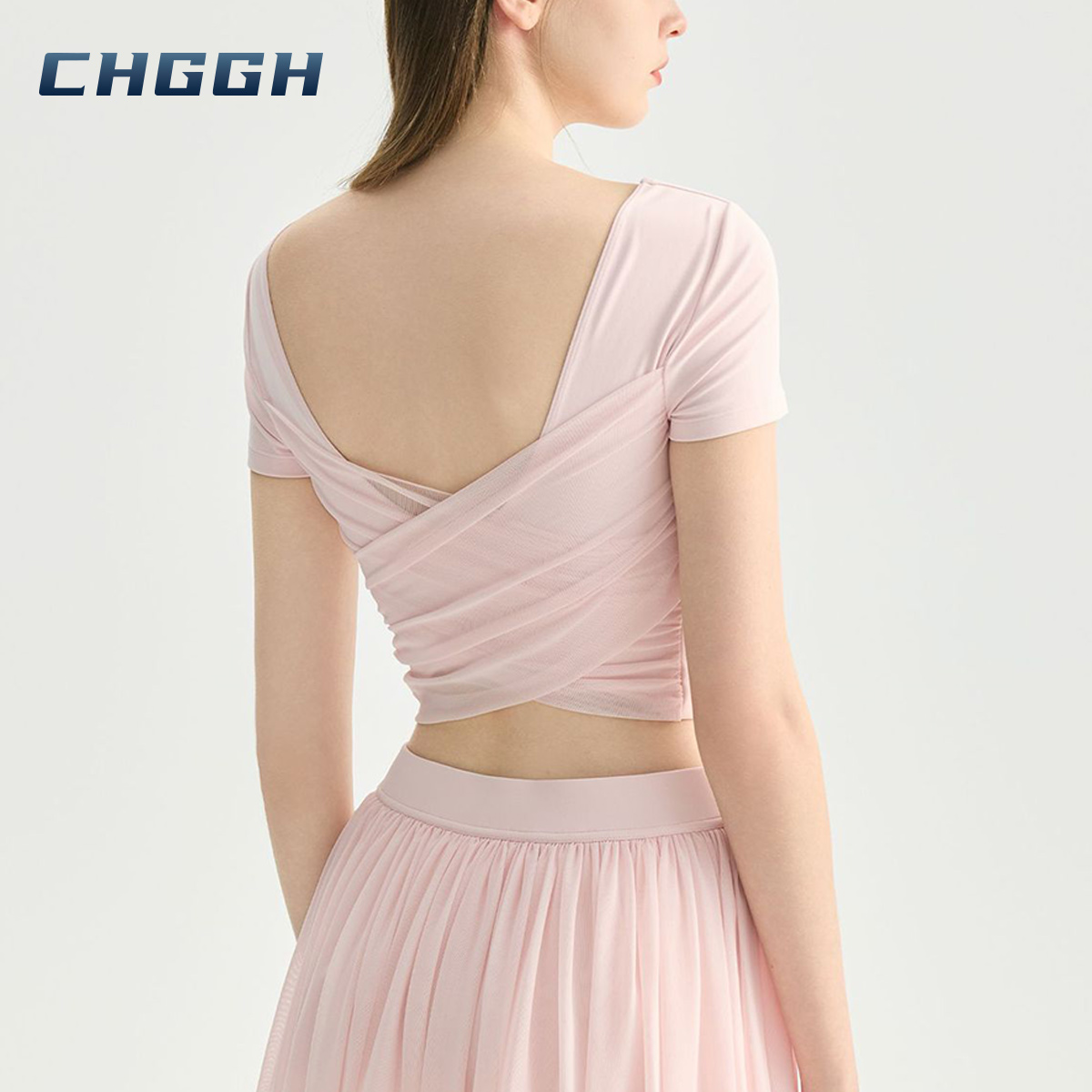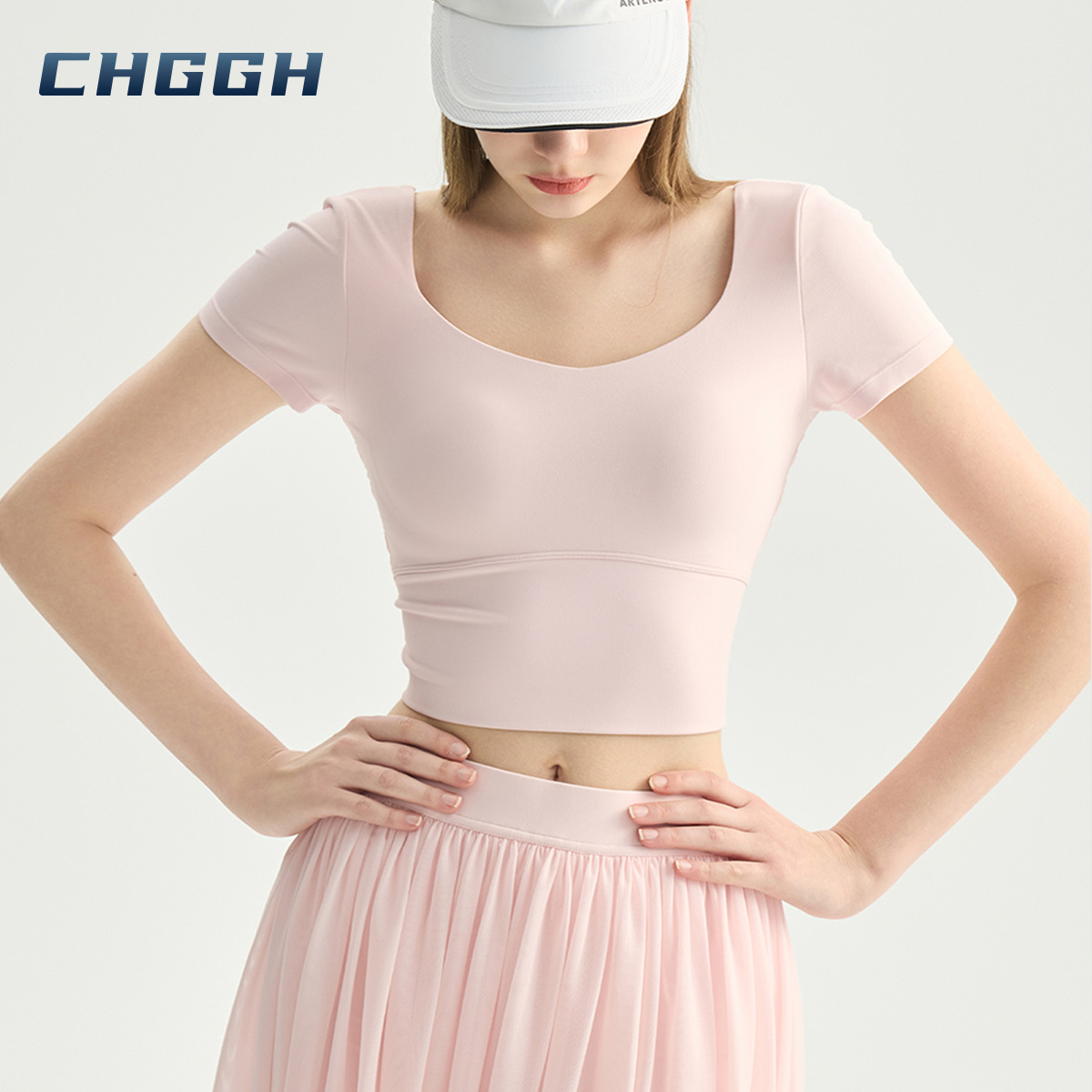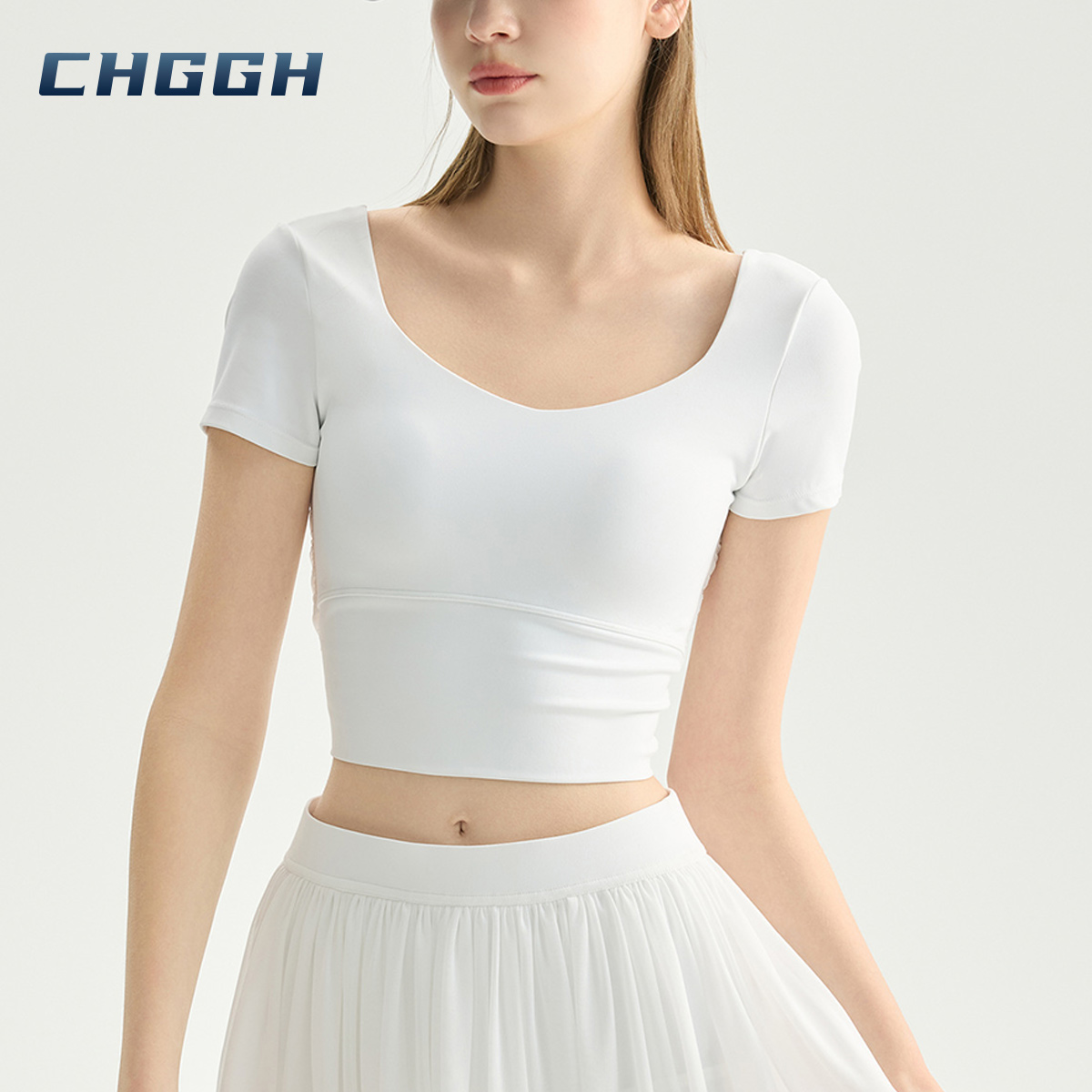 Women’s Ventilated Mesh-Back Performance Tee | Built-In Bra Support & Pilates Top